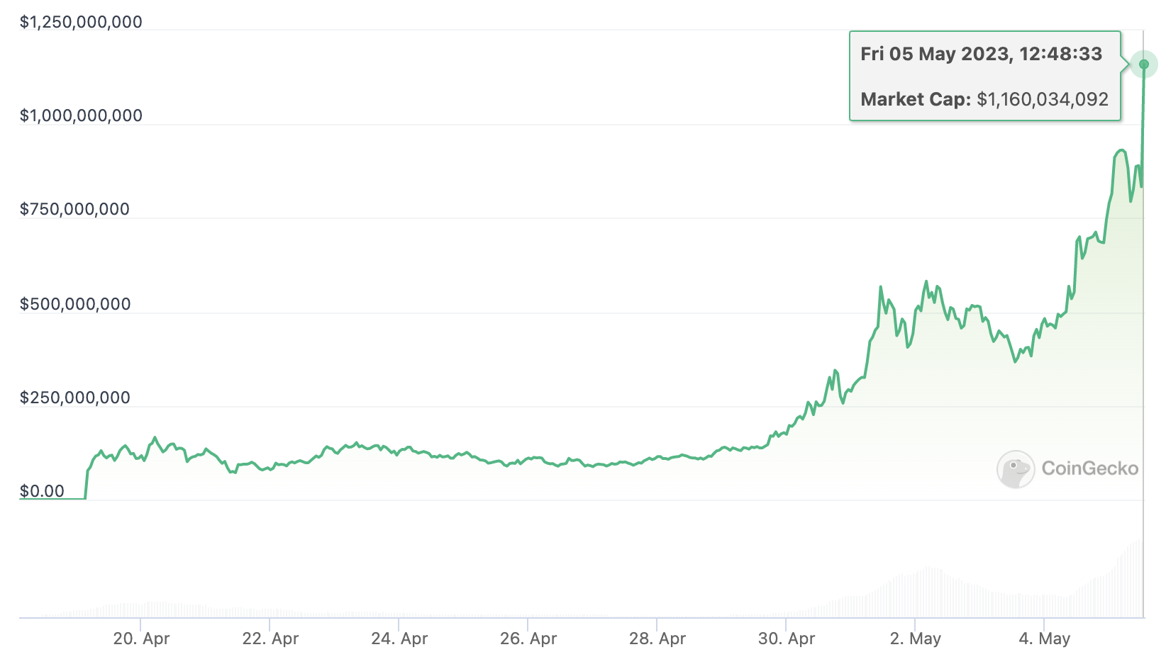 Pepecoin (PEPE), a recently-launched token based on the infamous "pepe the frog" meme, has already achieved a staggering $1 billion market capitalization. According to data provided by CoinGeko, the token's value surged by 70% over the past 24 hours, hitting an all-time high. This impressive rally has not only put PEPE in the spotlight but also triggered a surge in trading activity for other meme tokens on decentralized exchanges. For instance, WOJAK and PEEPO have skyrocketed by more than 600% in just a week. Meanwhile, established meme tokens such as dogecoin (DOGE) and shiba inu (SHIB) have failed to replicate these extraordinary gains and are currently trading in the negative territory for the week.