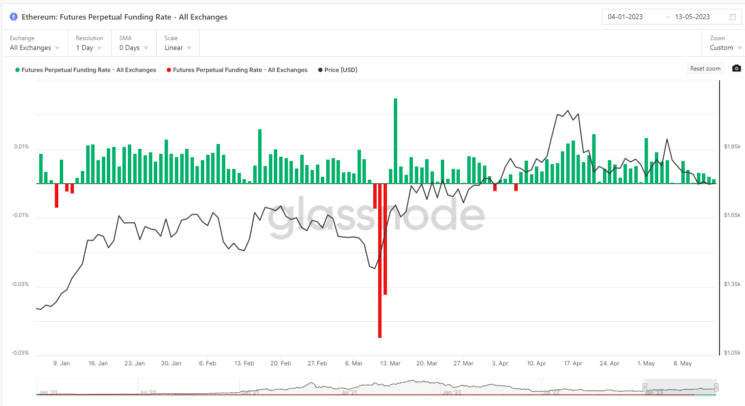 In the past 10 trading days, Bitcoin has experienced positive funding rates for 8 days. On the other hand, Ether has had positive funding rates for 7 days, with 3 instances of rates declining to zero. However, since April 6, Ether's funding rates have not fallen below zero.