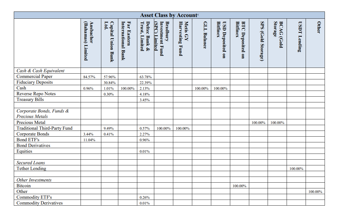 The aforementioned report further elaborates on the assets held by each institution, providing confirmation that Tether had a substantial portion of its reserves invested in commercial paper.