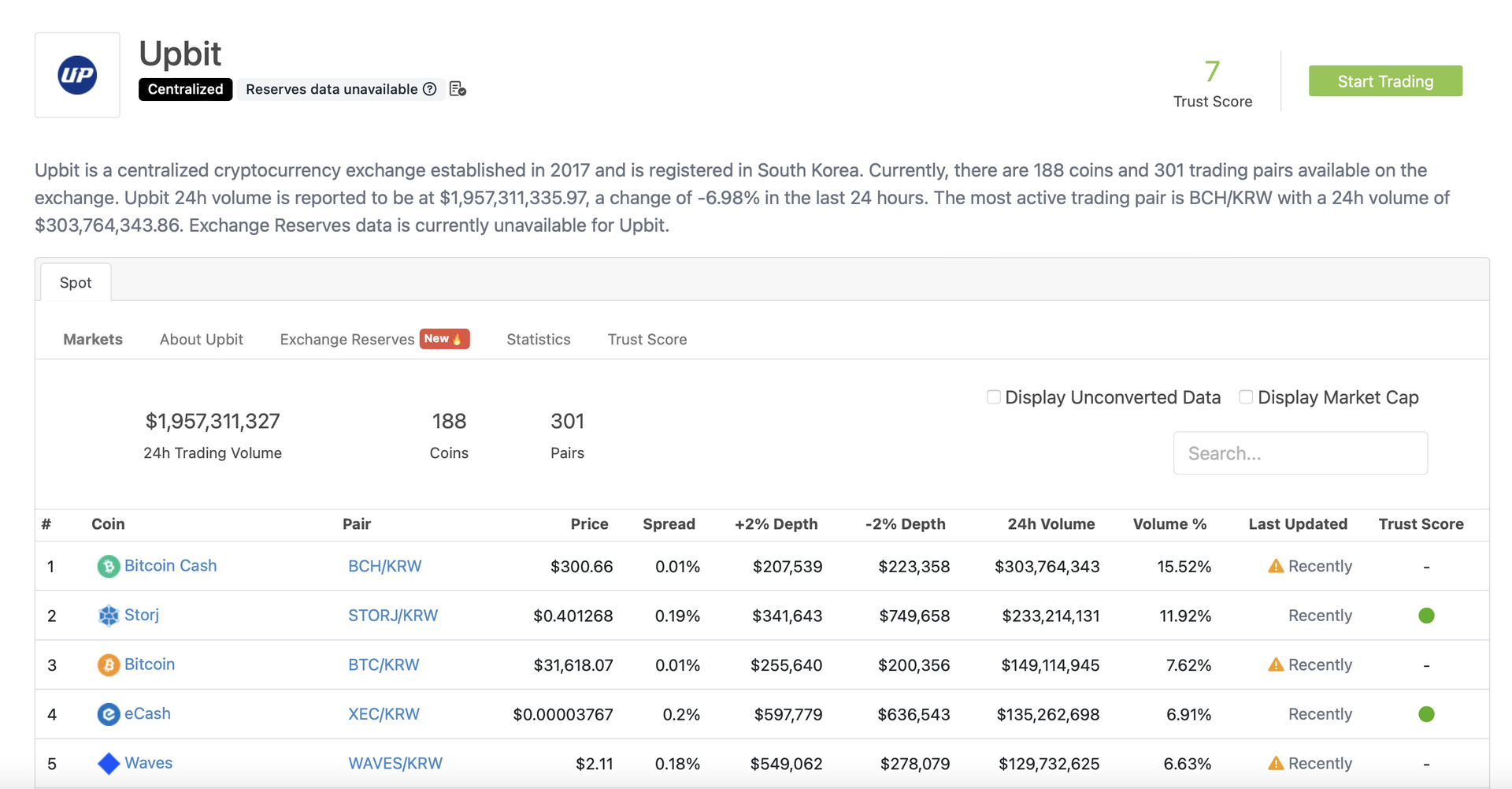 - The chart displays the trading volume of cryptocurrency trading pairs listed on Upbit, the largest digital assets exchange in South Korea, over a 24-hour period.